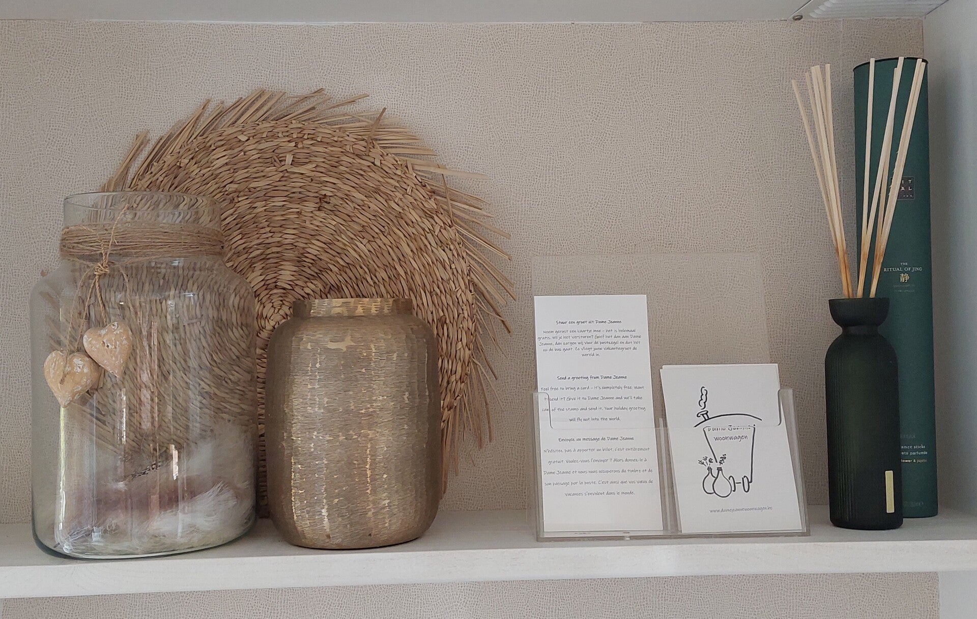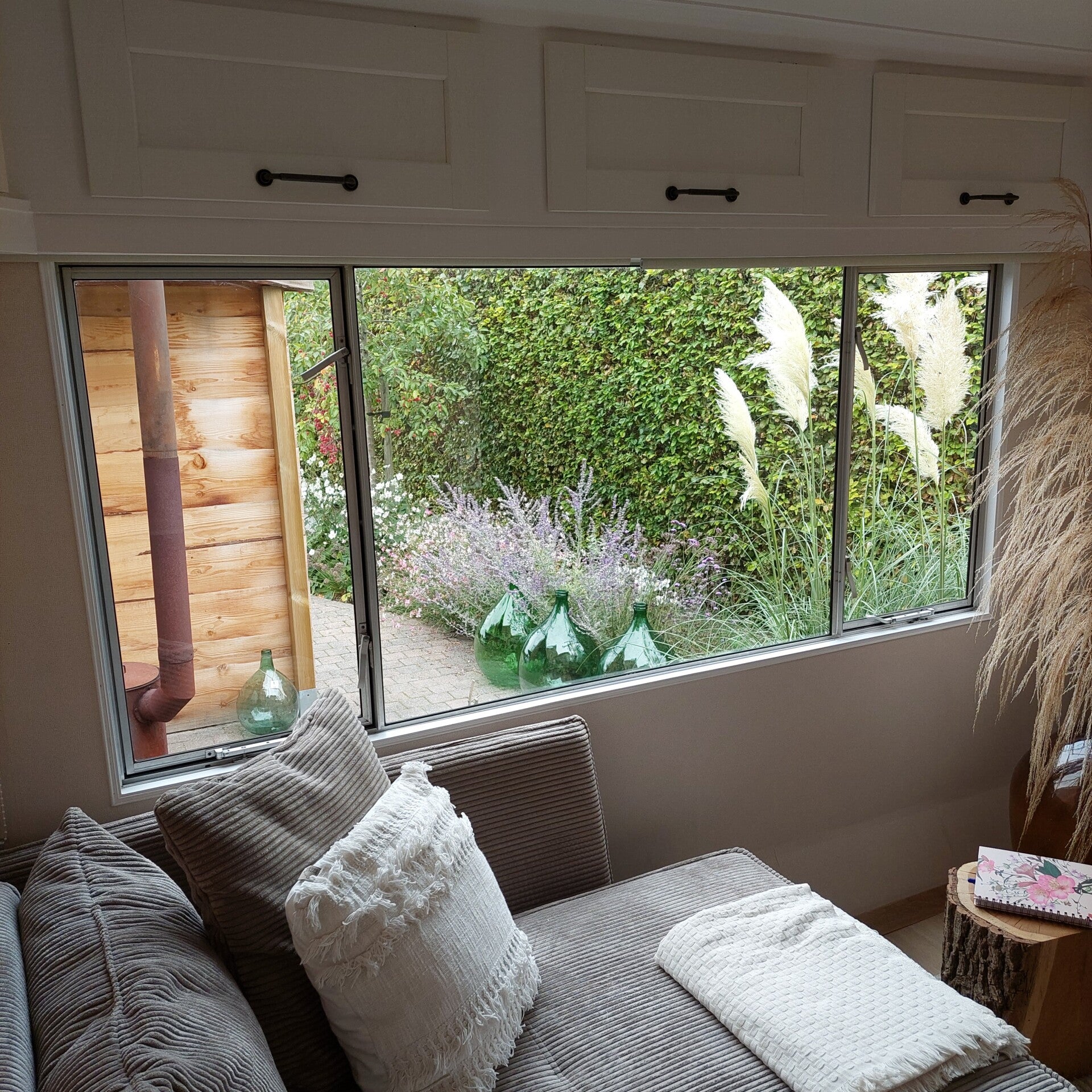Dame Jeanne is een unieke, ruime woonwagen van 8,30 meter bij 3 meter, volledig gerenoveerd met oog voor sfeer en comfort. Alles is ingericht om jou een ontspannen en aangenaam verblijf te bieden, zowel binnen als buiten. Het natuurlijk licht van buiten komt graag langs de grote ramen naar binnen. Alhoewel de woonwagen naast ons huis staat, is hij liefdevol omarmd door een houten omheining, pampa grassen en een kastanje afsluiting waardoor hij helemaal opgaat in de natuurlijke omgeving.